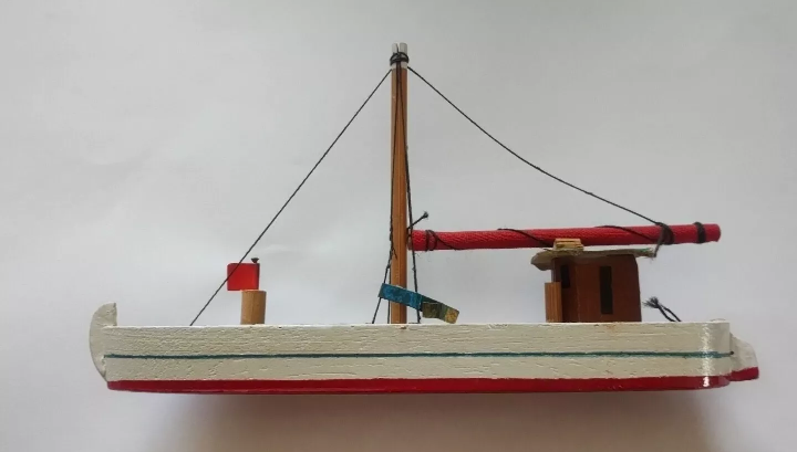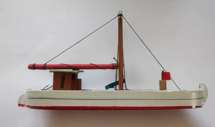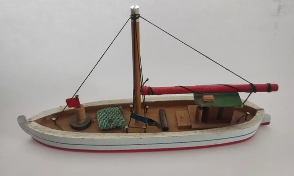 MODELLINO BARCA DA PESCA IN LEGNO VINTAGE ANNI '70 REALIZZATA A MANO ARTIGIANALMENTE BUONE/OTTIME CONDIZIONI, VEDI FOTO. DIMENSIONI : LUNGHEZZA : 17 Cm ALTEZZA : 10 Cm albero centrale compreso ) LARGHEZZA : 4 Cm